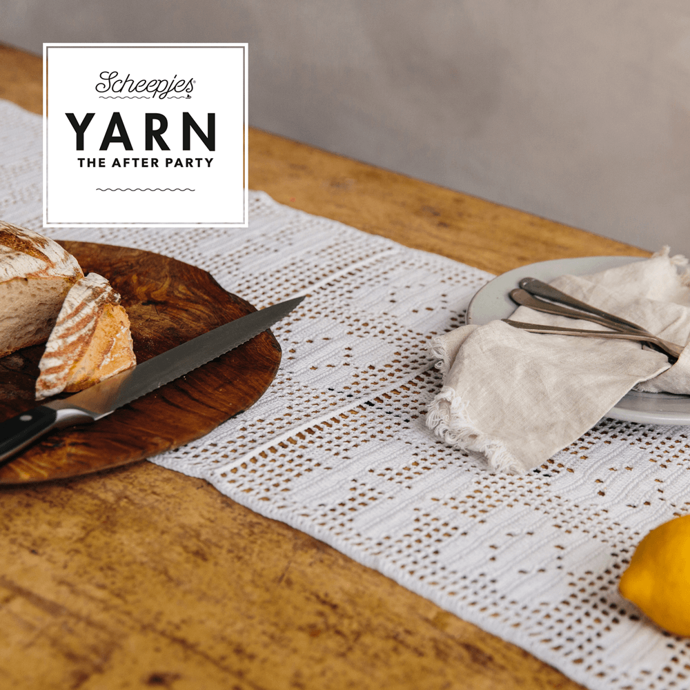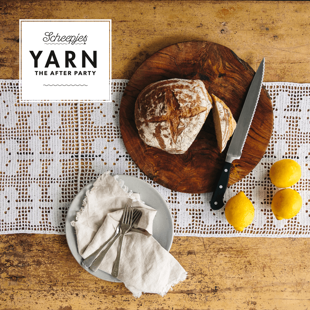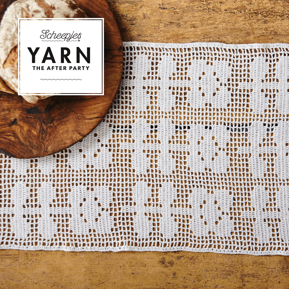 Filethaken is een ogenschijnlijk eenvoudige techniek voor het maken van ontwerpen met een delicate en kantachtige uitstraling. Rhian Drinkwaters beginnersvriendelijke Flower Fields Table Runner maakt u met slechts een paar basissteken. Het ontwerp bestaat uit herhaalde symmetrische motieven, waardoor het bijgevoegde haakdiagram makkelijk te volgen is voor zowel links- als rechtshandige hakers. De keuze voor Scheepjes Legacy no. 12 in het matte wit doet denken aan vervlogen tijden, waarin onze (over)grootmoeders onderleggers, tafellopers en zelfs doopjurken vervaardigden in neutrale tinten wit en ecru. huisdecoraties. De combinatie van het witte Scheepjes Legacy en de filethaaktechniek laat dit ontwerp prachtig tot z’n recht komen in een landelijk interieur op een rustiek houten tafel.