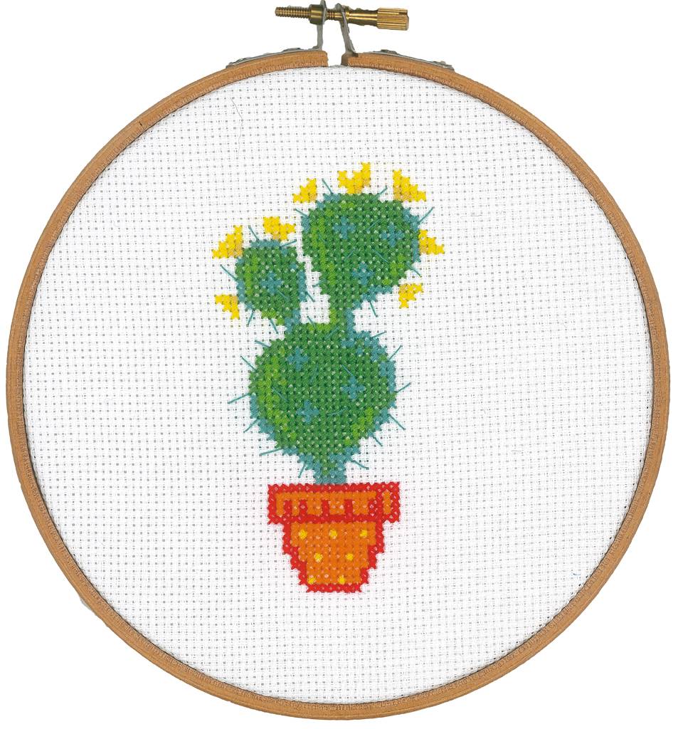 Borduurpakket cactus met borduur-ring. Dit leuke borduurpakket met borduur-ring heeft een doorsnede van ongeveer 14.5 cm.