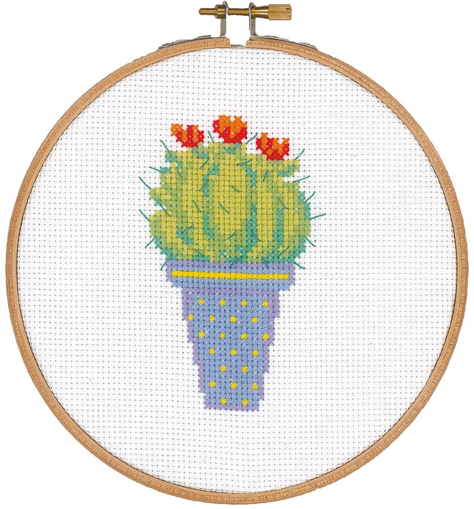 Borduurpakket cactus met borduur-ring. Dit leuke borduurpakket met borduur-ring heeft een doorsnede van ongeveer 14.5 cm.