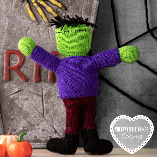 Monsterlijk leuk maken is het breien van je eigen Little Frankie, gemaakt van betaalbaar 100% Premium Acryl Scheepjes Colour Crafter! Frankie’s onderdelen worden plat gebreid met de tricotsteek, waarna hij in elkaar genaaid en gevuld wordt en geborduurde details hem persoonlijkheid geven. Ontwerper Sophie Jordan heeft opmerkelijke details toegevoegd, zoals een verwisselbare jas met kleine knopen, gerepareerde kleding en nekschroeven – alles om dit karakter tot leven te brengen.