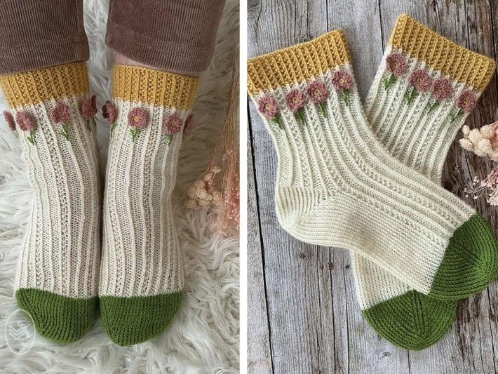 Wat een vrolijke sokken voor de lente, vind je ook niet? De Spring Fragrance sokken worden van boven naar beneden in het rond gebreid met Durable Soqs.