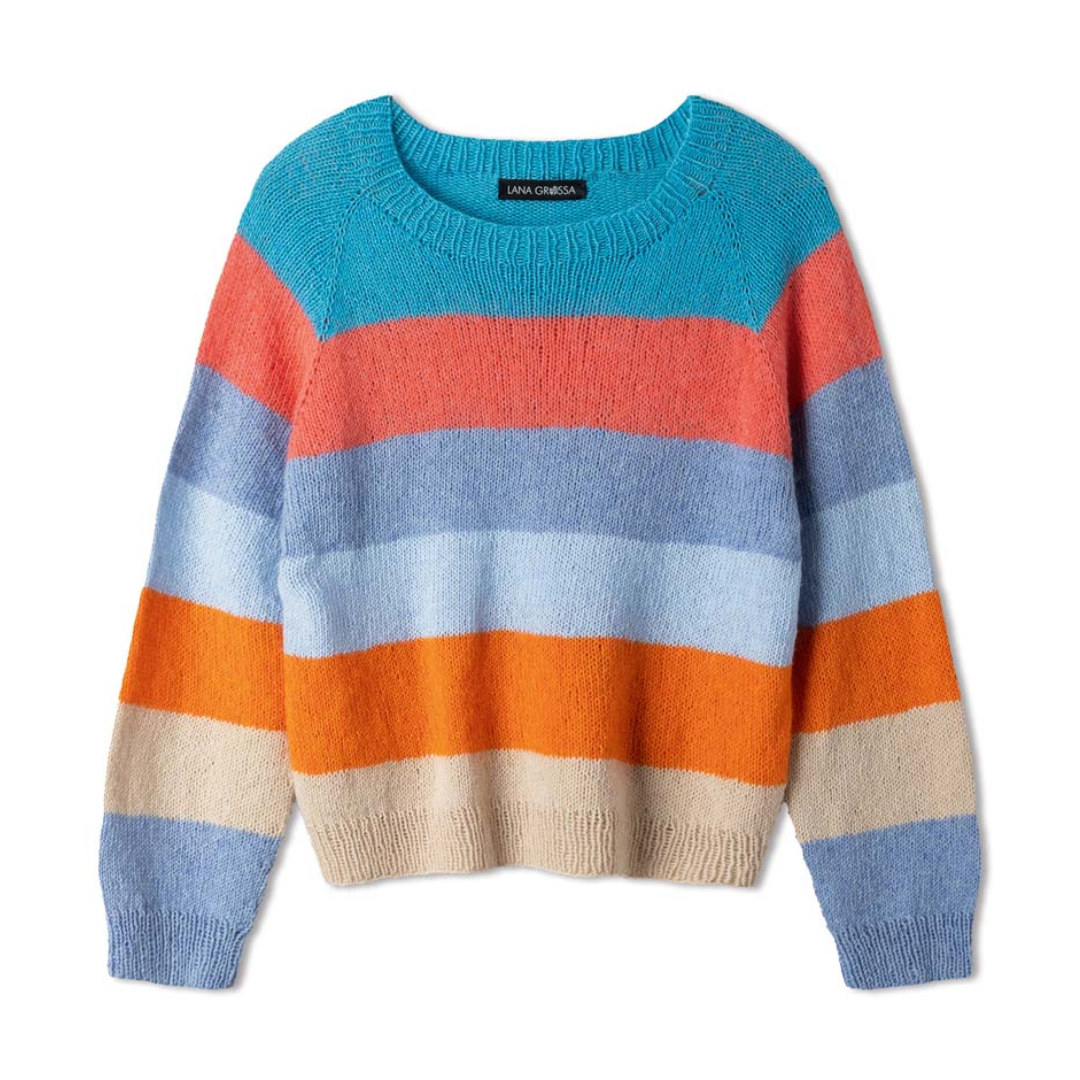 Breipakket voor een prachtige trui met brede strepen gemaakt met Ecopuno van Lana Grossa. Het patroon komt uit het Lookbook 18.