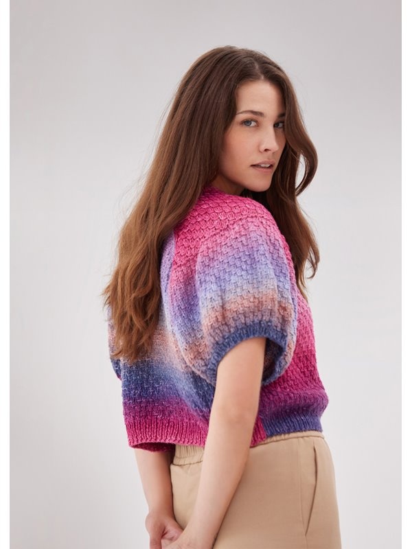 Breipakket voor een vest met korte mouwen gemaakt met Cotonella van Lana Grossa. Het patroon komt uit het Lookbook 16. Beschreven in maat 36 t/m 54.