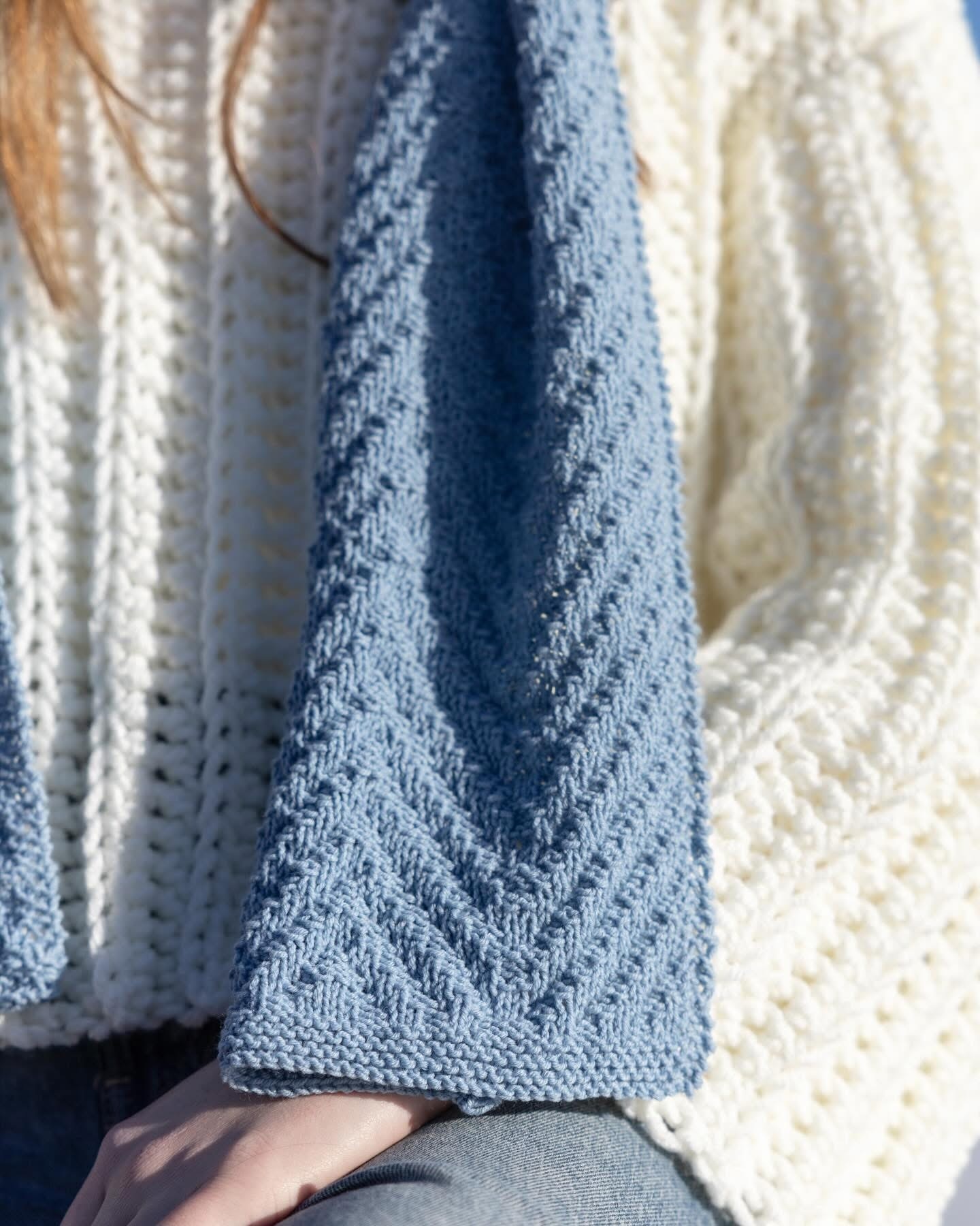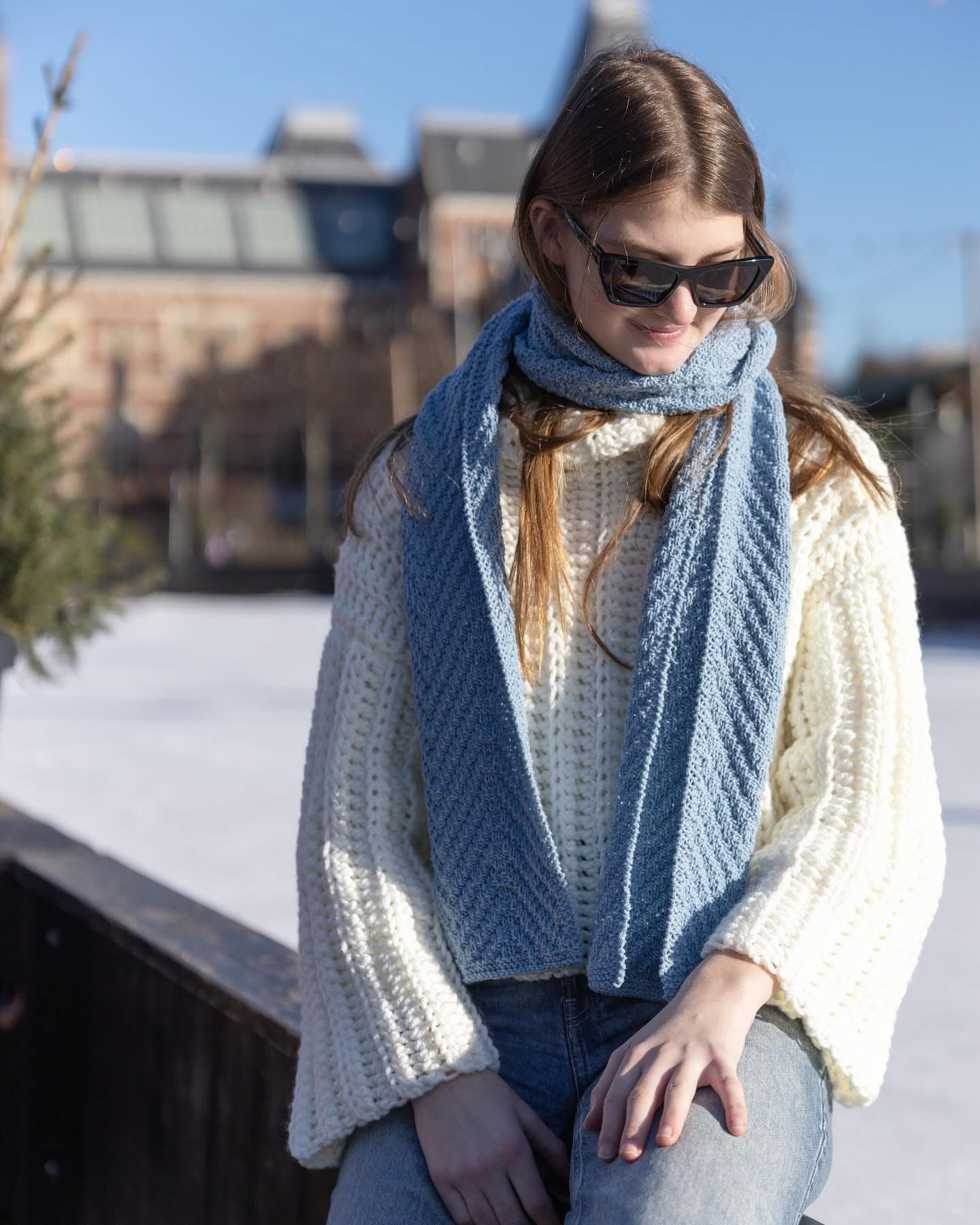 Deze leuke sjaal met zigzag motief wordt in heen- en weergaande naalden gebreid. De sjaal heeft ribbelsteken aan de onder-, boven- en zijranden. De voor- en achterkant zien er hetzelfde uit. De sjaal wordt gebreid met Durable Cosy fine, een garen dat zeer geschikt is voor sjaals, heerlijk zacht en verkrijgbaar in 49 kleuren. Het voorbeeld is gemaakt met 4 bollen kleur 289 Blue Grey.