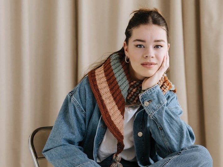 Deze sjaal is gebreid in een gebroken ribsteek. Door de afwisseling van smalle en brede strepen ontstaat er een tof effect zodra je de sjaal om je nek hangt!