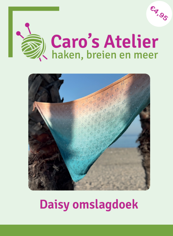 Breipatroon voor de Daisy Omslagdoek van Caro's Atelier. Dit patroon is een eigen ontwerp van Caro's Atelier.