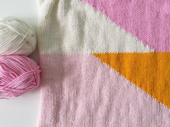 Dit kussen is gebreid met Durable Cosy fine. Een heerlijk garen van 58% katoen en 42% polyacryl. Er is gekozen voor een geometrisch patroon met de kleuren Light pink, Ivory, Honey en Rose. Maar het patroon is uiteraard in ieder gewenste kleurcombinatie te
