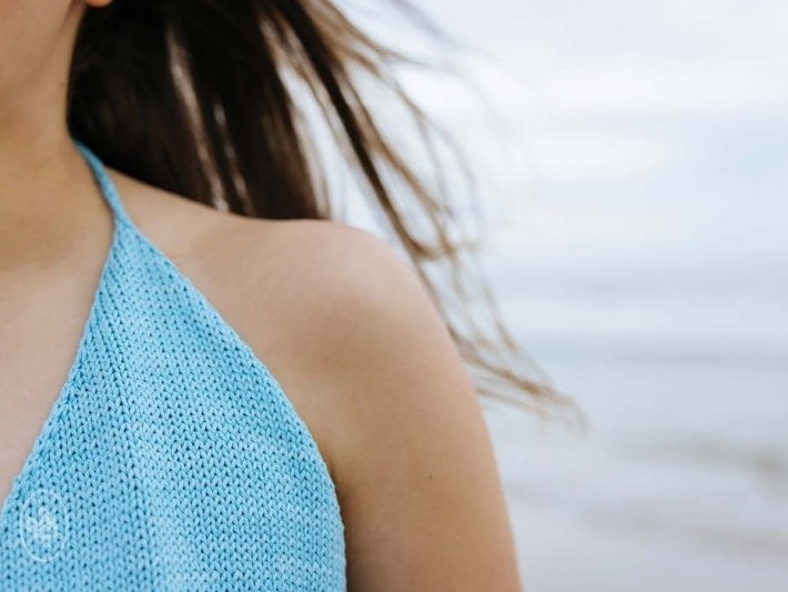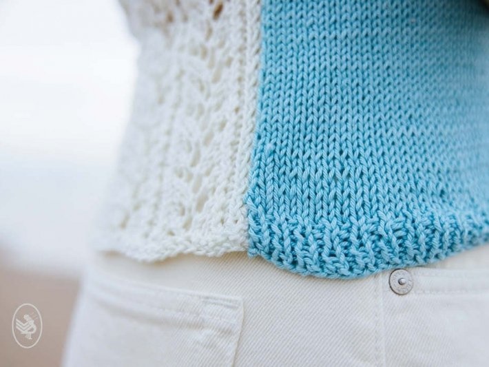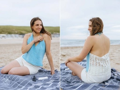 Deze zomerse top heeft een simpele voorkant en een mooie rug met kantpatroon. De top heeft een kort model en wordt lekker luchtig doordat je hem breit met Durable Coral.