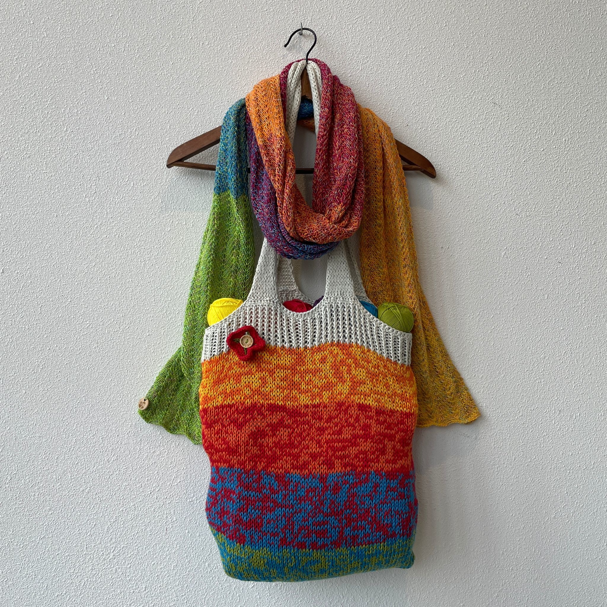 Breipakket voor een vrolijke sjaal, gebreid met Lana Grossa Twisted Summer Shades.