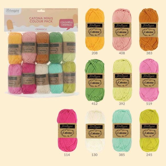 Met de Scheepjes Catona colour packs heb je altijd een prachtig gebalanceerde en bij elkaar passende selectie kleuren in handen. Elk colour pack bestaat uit 10 verschillende mini-bollen Scheepjes Catona van 25 gram in een sfeervol kleurenthema.