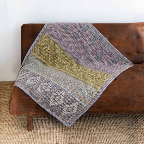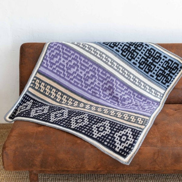 De deken wordt gehaakt met de mozaïek techniek. Het patroon is bij het pakket inbegrepen en ontvangt u digitaal.