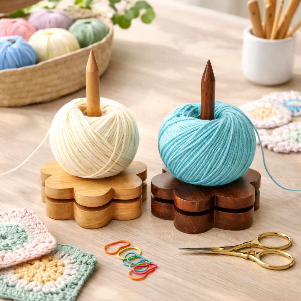 Je plaatst je bol eenvoudig op de houder, waarna het garen soepel en gelijkmatig afrolt tijdens het werken. Zo voorkom je knopen, wegrollende bollen en onnodige frustratie.