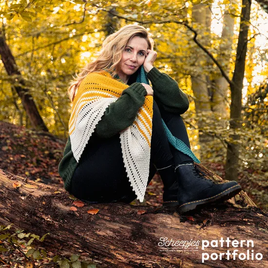 De sjaal is gemaakt met een harmonieuze mix van linnensteken en filet-haaksteken en heeft een speelse picot-rand en levendig gestreepte kleurovergangen. Deze sjaal wordt gemaakt vanaf de smalste rand met drie tinten Scheepjes Woolwise garen en is een plezier om te maken en te dragen.