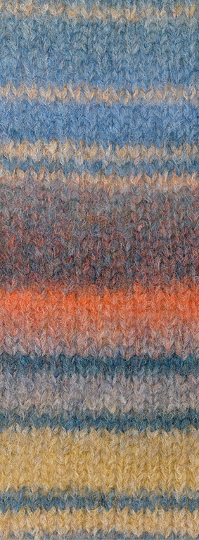 Zacht, volumineus alpacagaren met een structuureffect en kleurverloop in strepen. Geschikt voor naald 6.