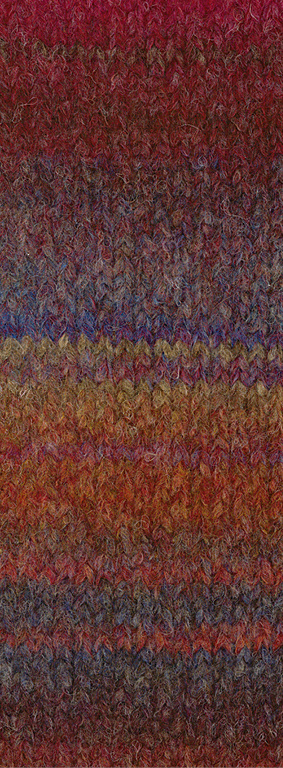 Zacht, volumineus alpacagaren met een structuureffect en kleurverloop in strepen. Geschikt voor naald 6.