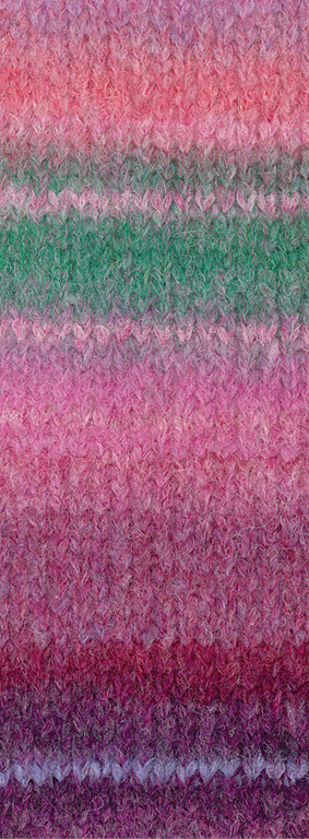 Zacht, volumineus alpacagaren met een structuureffect en kleurverloop in strepen. Geschikt voor naald 6.