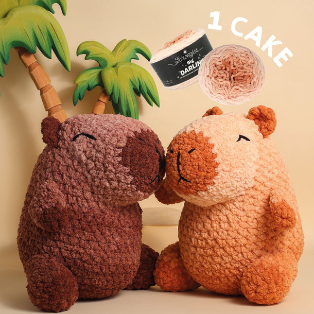 Het patroon is los verkrijgbaar of als compleet garenpakket. Met het patroon kun je zowel de capibara als de accessoires haken. Kies je voor het pakket, dan kun je één capybara haken met een Cake in kleur naar keuze (zoals op de foto: Pony en Red Panda) en één accessoire wanneer je een bol Little Darling in jouw favoriete kleur toevoegt.