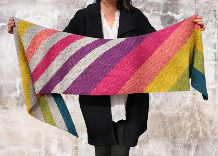 Deze prachtige sjaal wordt gehaakt met Scheepjes Terrazzo en is een ontwerp van Look at What I made.