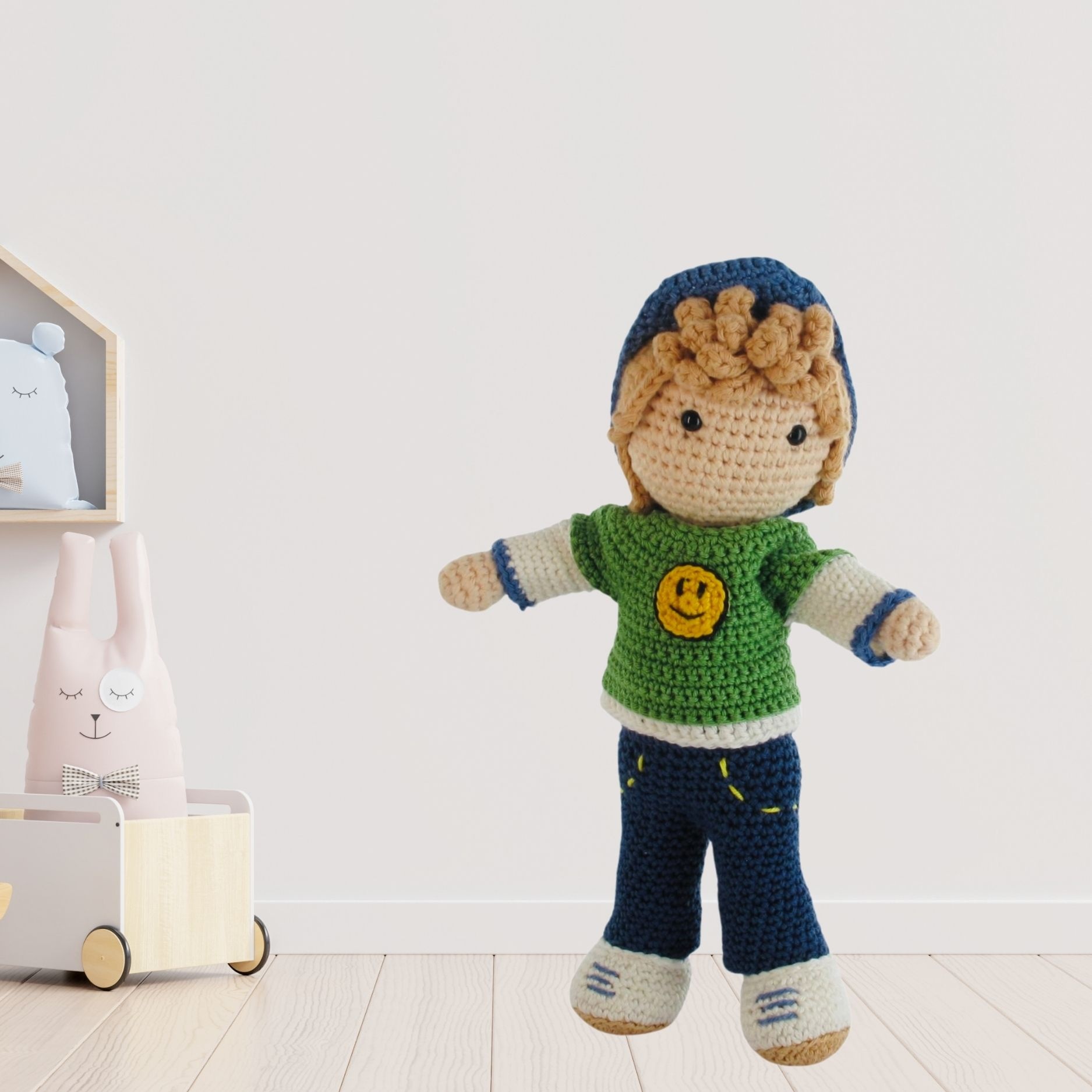 Dit pakket bestaat uit alle garens die nodig zijn om Kareltje met zijn stoere outfit te maken.