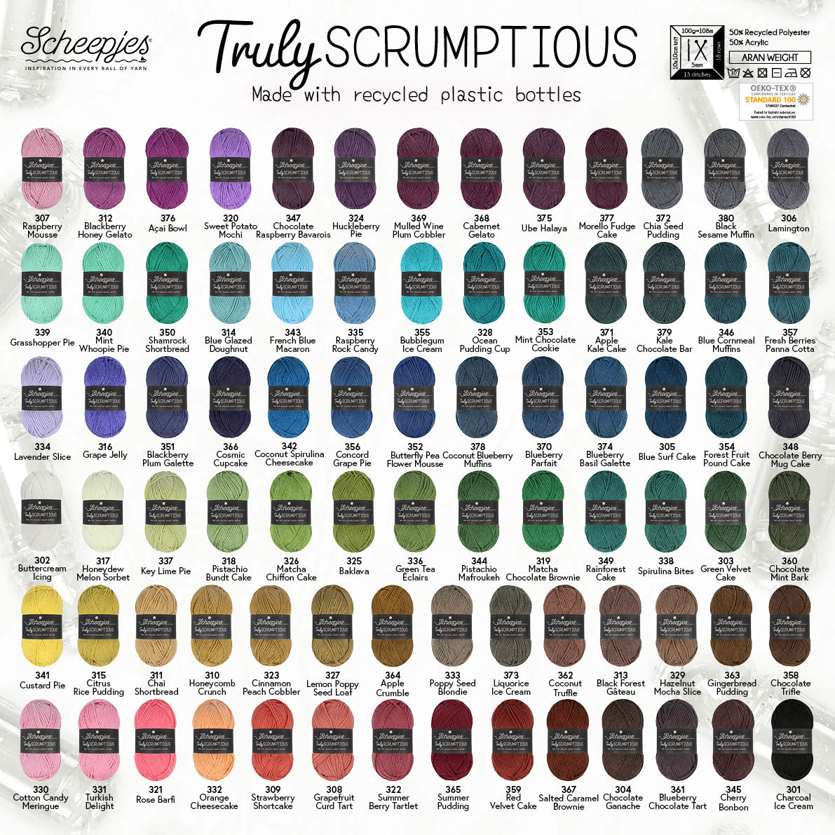 - Benodigde garen in de kleuren naar keuze, bekijk hier alle kleuren en de actuele voorraad Truly Scrumptious
