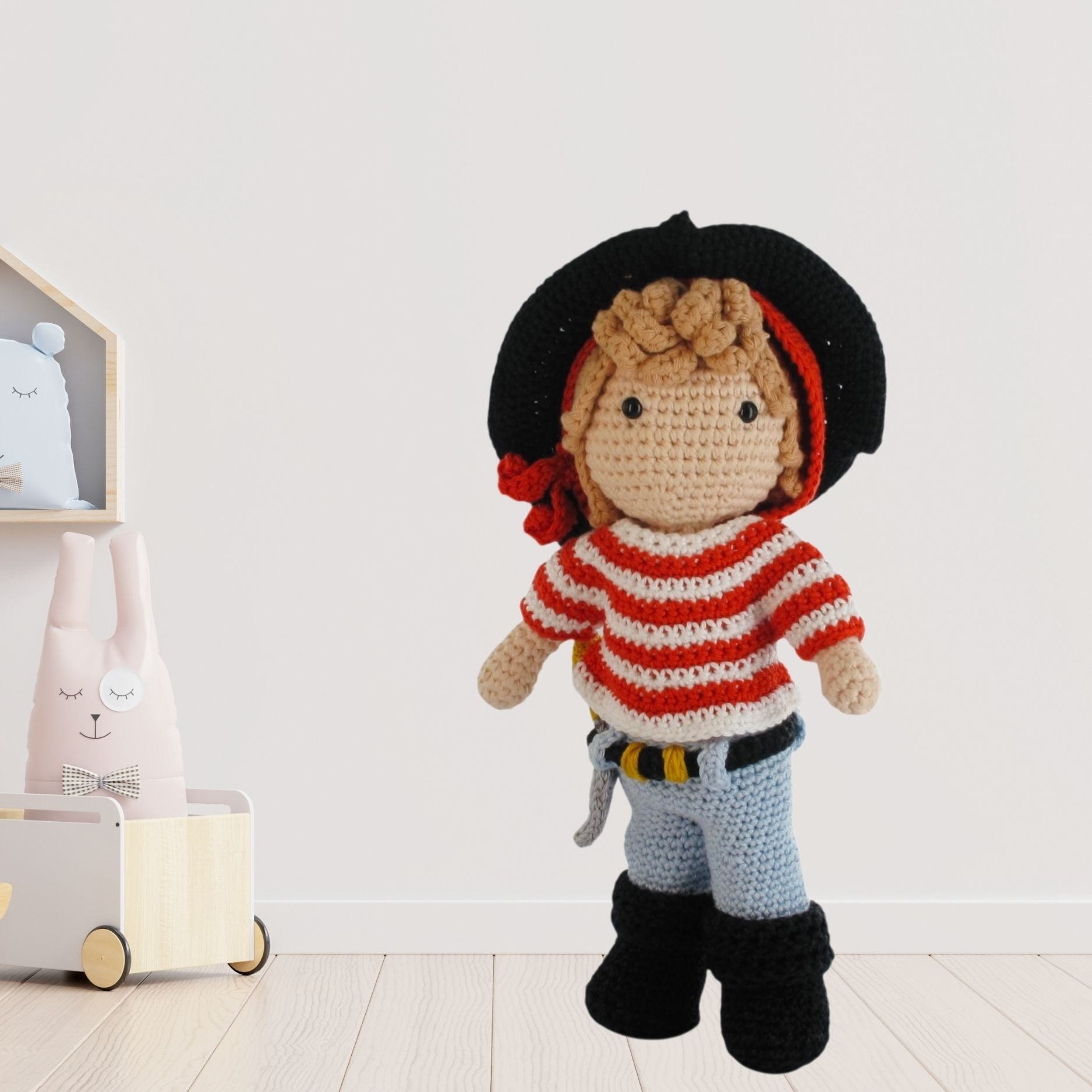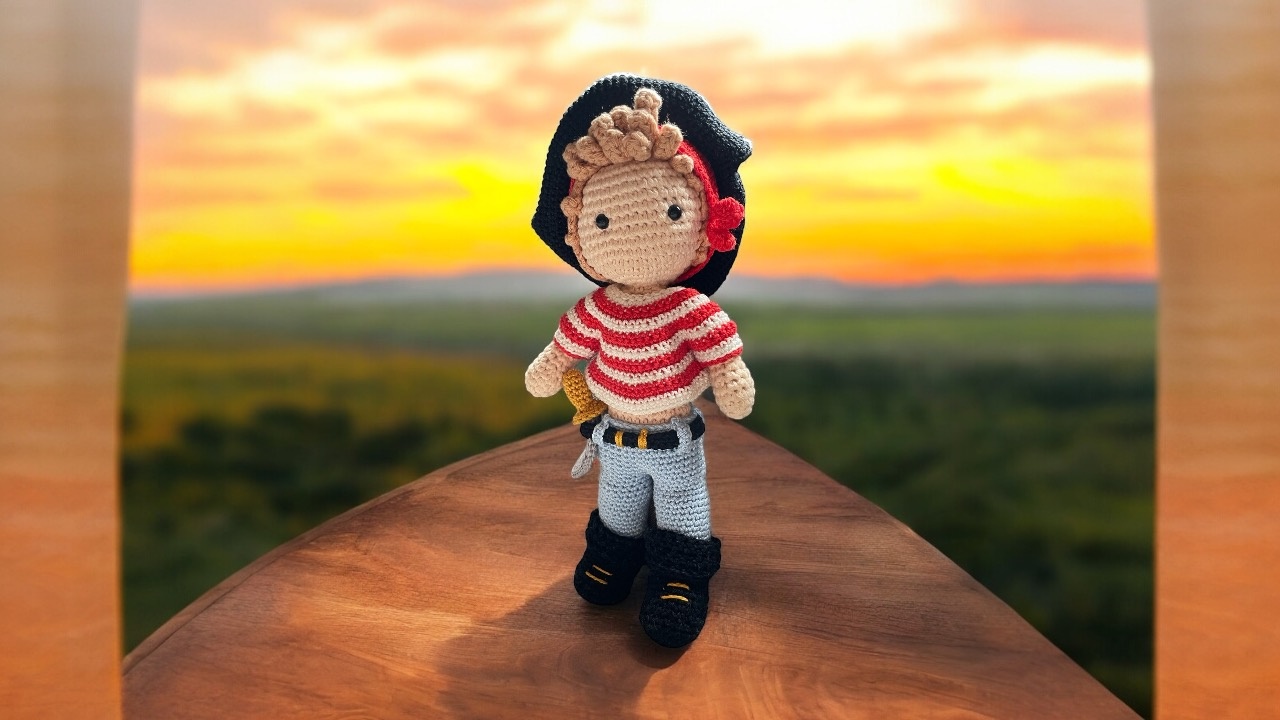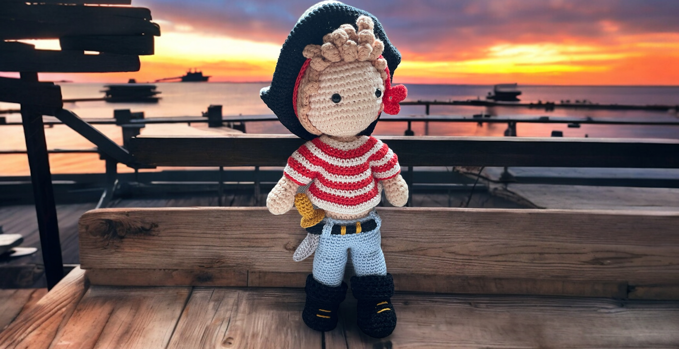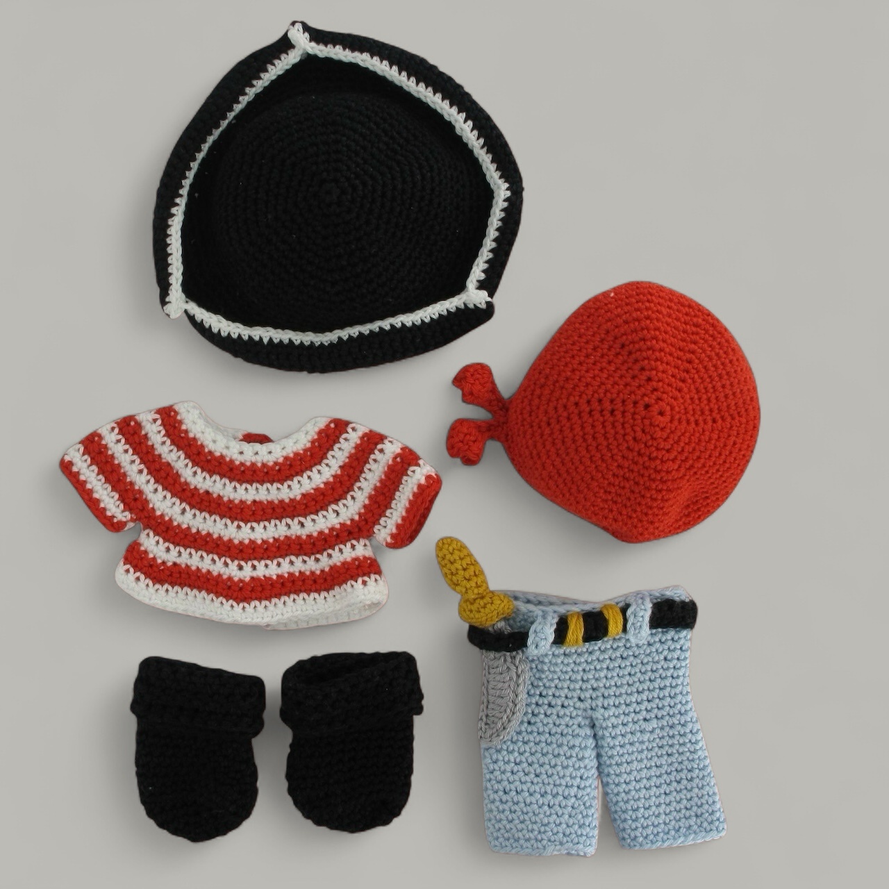 BeschrijvingHaakpakket: Piraat outfit Kareltje