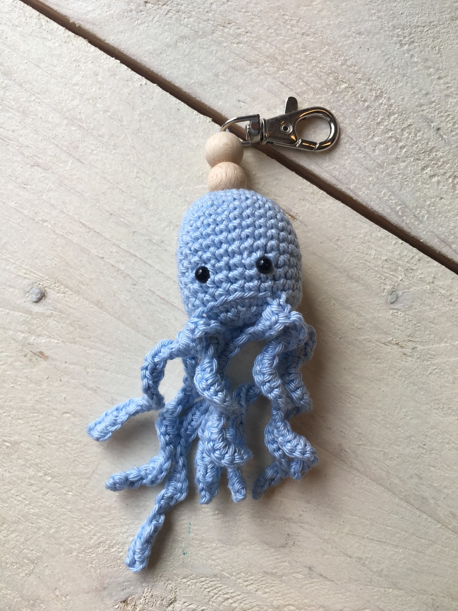 Haakpakket voor een sleutelhanger in de vorm van een kwal gemaakt van Scheepjes Catona.