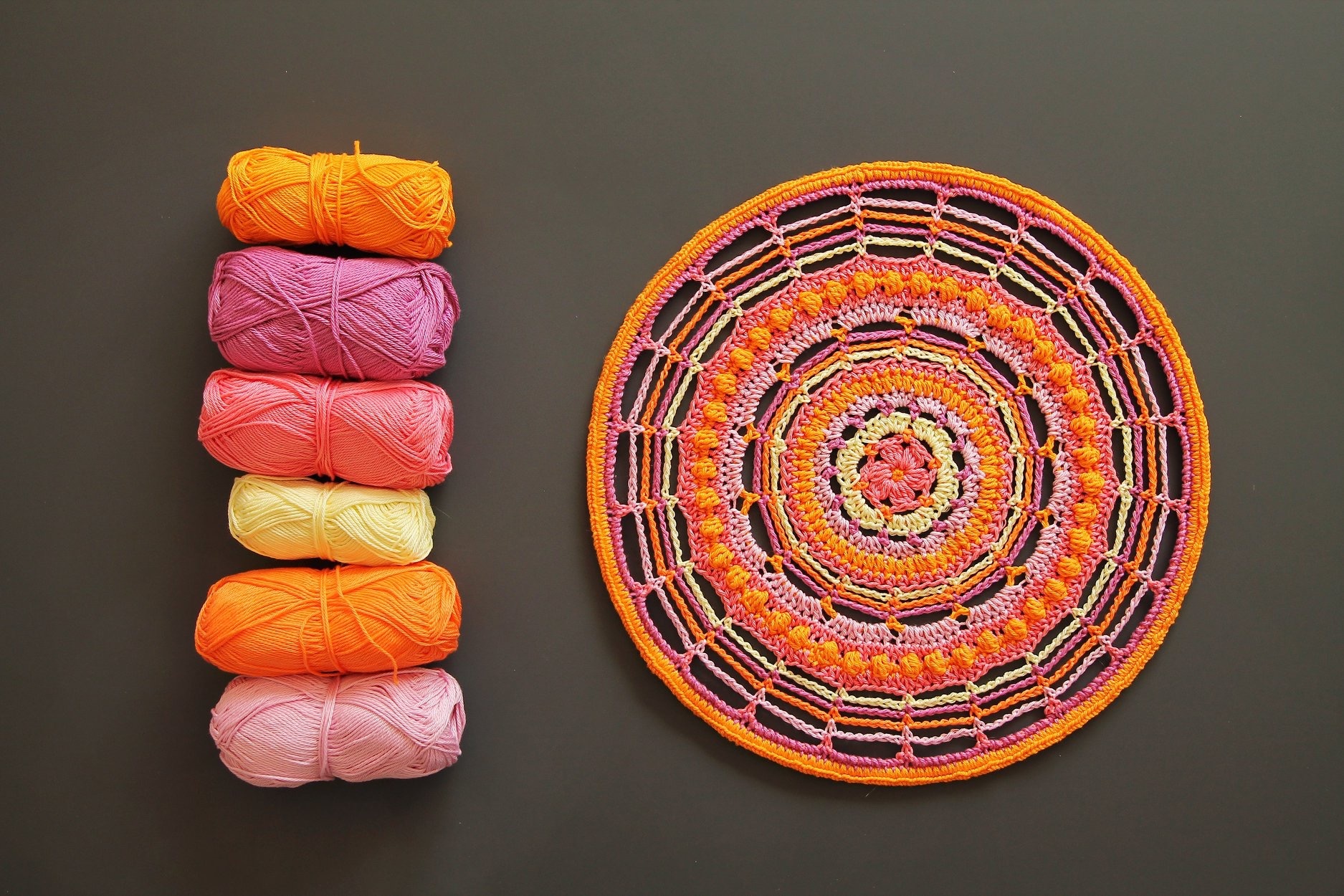 Deze mooie mandala is ontworpen door Scheepjes blogger Kirsten Ballering van het blog haakmaarraak.nl. De mandala is de gehaakte variant van de mandala van de maand juli van Simy's Year of the Mandalas.
