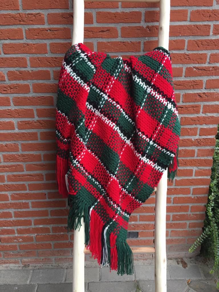 De deken wordt ca. 120 x 120 cm, gemeten zonder franjes.