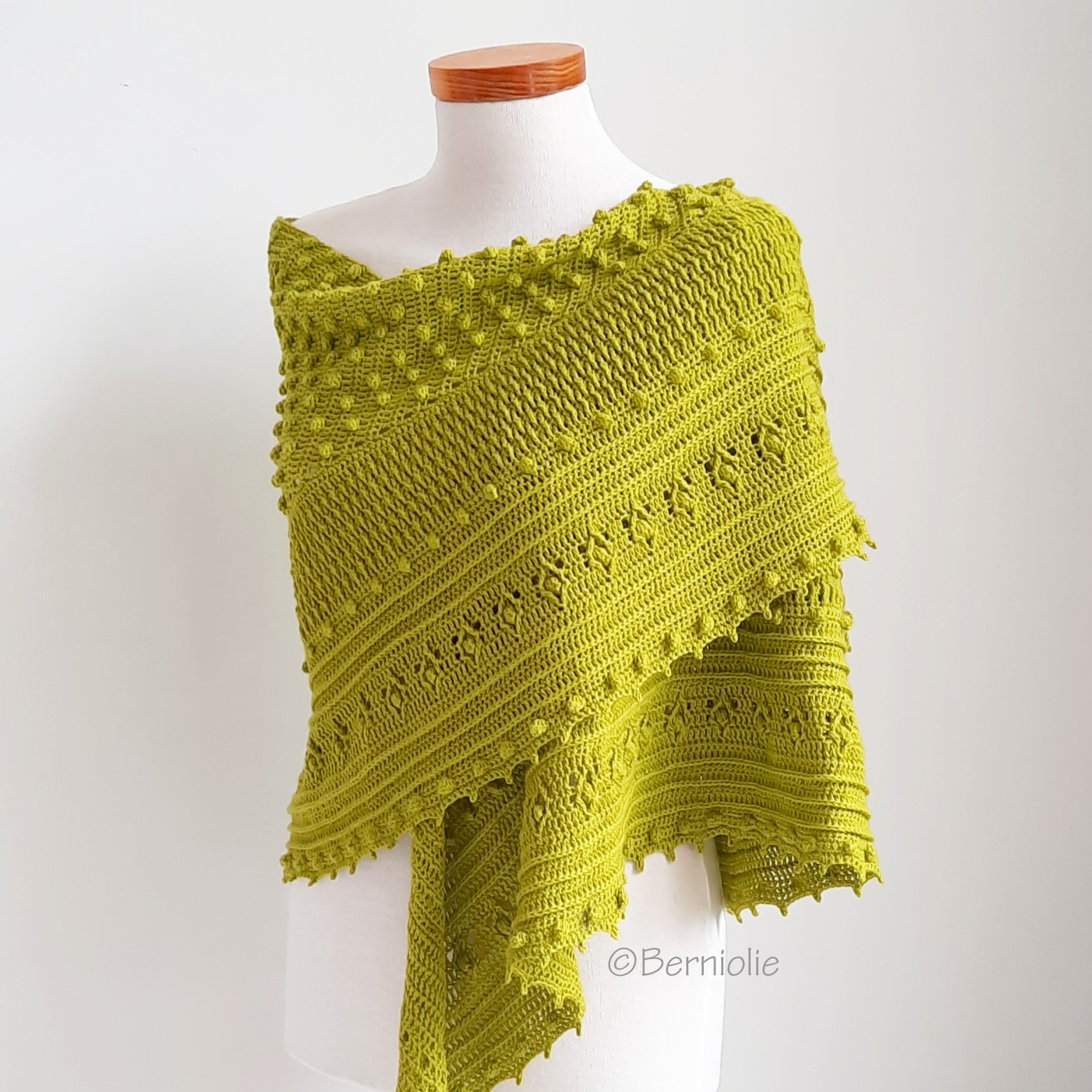 De Biblio Shawl is een ontwerp van Bernadette Ambergen van Berniolie Designs.