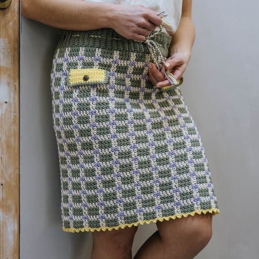 BeschrijvingHaakpatroon Geruite Lente Rok