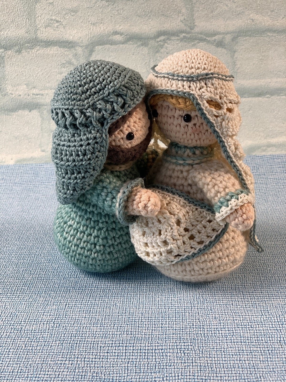 Het digitale patroon voor het haken van Jozef & Maria, Jezus en de Kribbe.