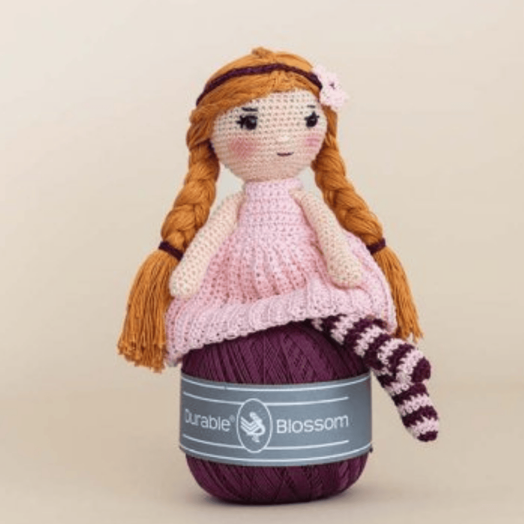 Maak kennis met Blossom, een lief en vrolijk popje dat speciaal gehaakt is met ons gloednieuwe Durable Blossom garen. Dit verfijnde, katoenen draad met een subtiele matte glans leent zich perfect voor de kleinste details – precies wat dit schattige popje bijzonder maakt.