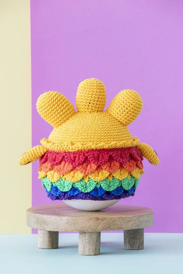 Kaleido is het ultieme regenboogmonster, compleet met drie nieuwsgierige ogen! Deze speelse amigurumi is gehaakt met een levendige combinatie van Catona garens en heeft opvallende schubben op de onderkant. Bovendien wiebelt hij ook vrolijk rond wat voor extra plezier zorgt. Perfect voor een vrolijke kinderkamer of om wat kleur toe te voegen aan elke ruimte!