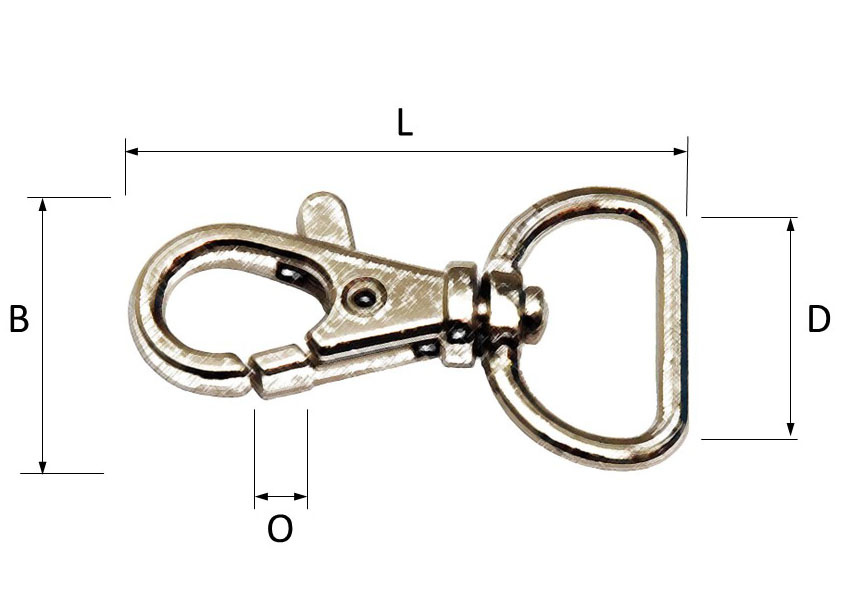 Afmetingen: D - Doorvoer 9 mm, L - Lengte 40 mm, B - Breedte 17 mm O - Opening 5 mm