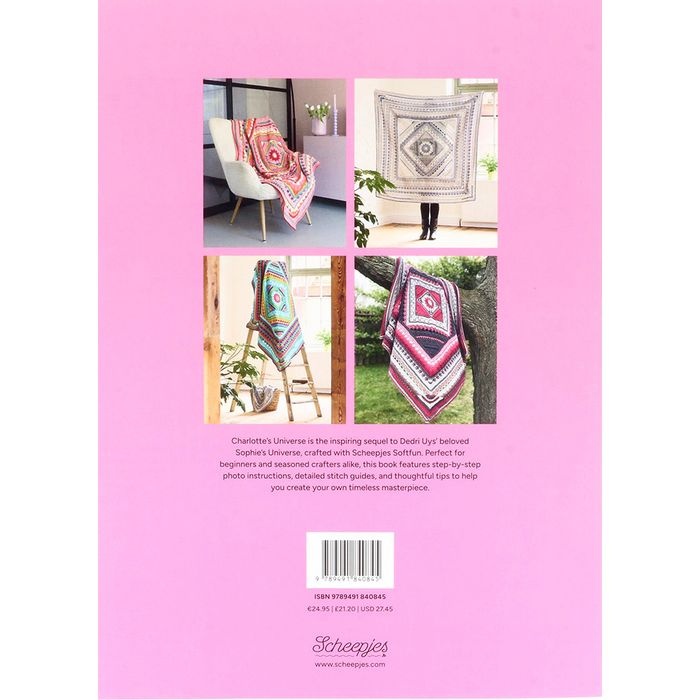 Patronenboek voor de Charlotte's Universe deken , ontworpen door Dedri Uys. Het boek bevat een inleiding door Dedri, een uitleg van gebruikte haaktechnieken en een gedetailleerde werkbeschrijving, inclusief foto’s, haakdiagrammen en handige tips.