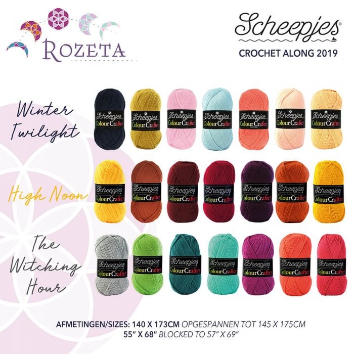 Voor deze CAl is gekozen voor de Scheepjes garens Colour Crafter. De deken wordt ca. 145 x 175 cm.