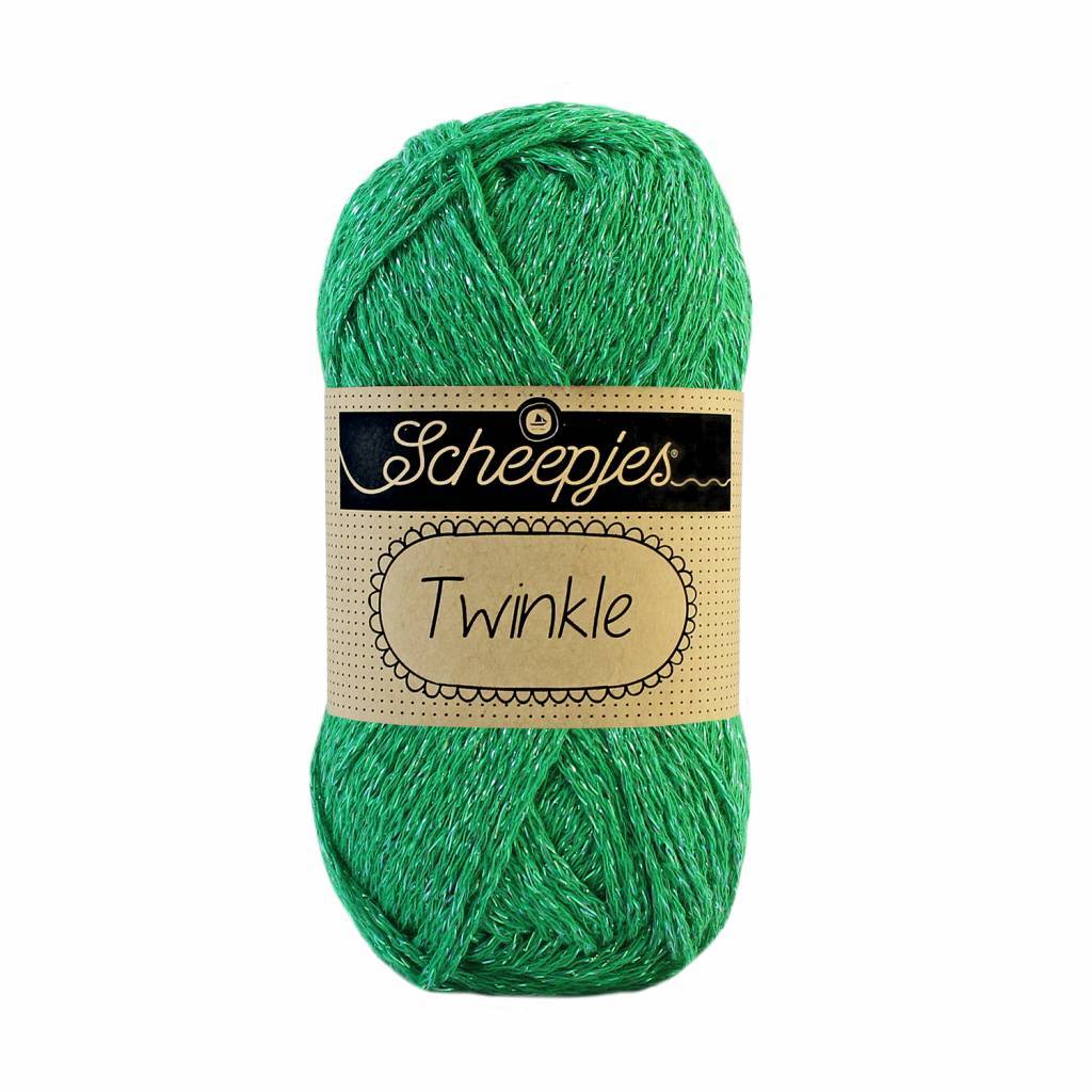 Scheepjes Twinkle, een prachtige katoenen draad met veel glitter. De aanbevolen naalddikte is 4 mm.