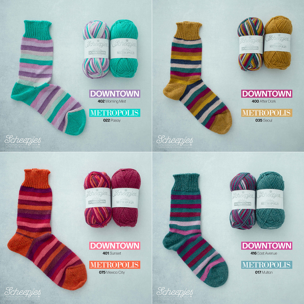 Tijdens deze Summer Sock-A-Long breien deelnemers gedurende 4 weken de tijdloze Classic New Leaf Socks met de zustergarens Scheepjes Metropolis and Downtown. Afhankelijk van het niveau hebben deelnemers de keuze om dit toe-up (beginnend bij de teen) ontwerp per sok of met twee sokken tegelijkertijd op rondbreinaalden en met de magic loop methode te breien. Via de Officiële Scheepjes Facebookgroepen en haar blog, zal Carmen, met ondersteuning van de bekwame Scheepjes admins en mods, gedetailleerde videotutorials en blogposts delen in zowel het Engels als het Nederlands. Leer handige technieken, zoals Judy’s Magic Cast On, Duitse verkorte toeren en Lori’s Twisty Bind Off, of verbeter je vaardigheden terwijl je de mogelijkheden ontdekt van deze Extra Fine Merinowolmix garens.