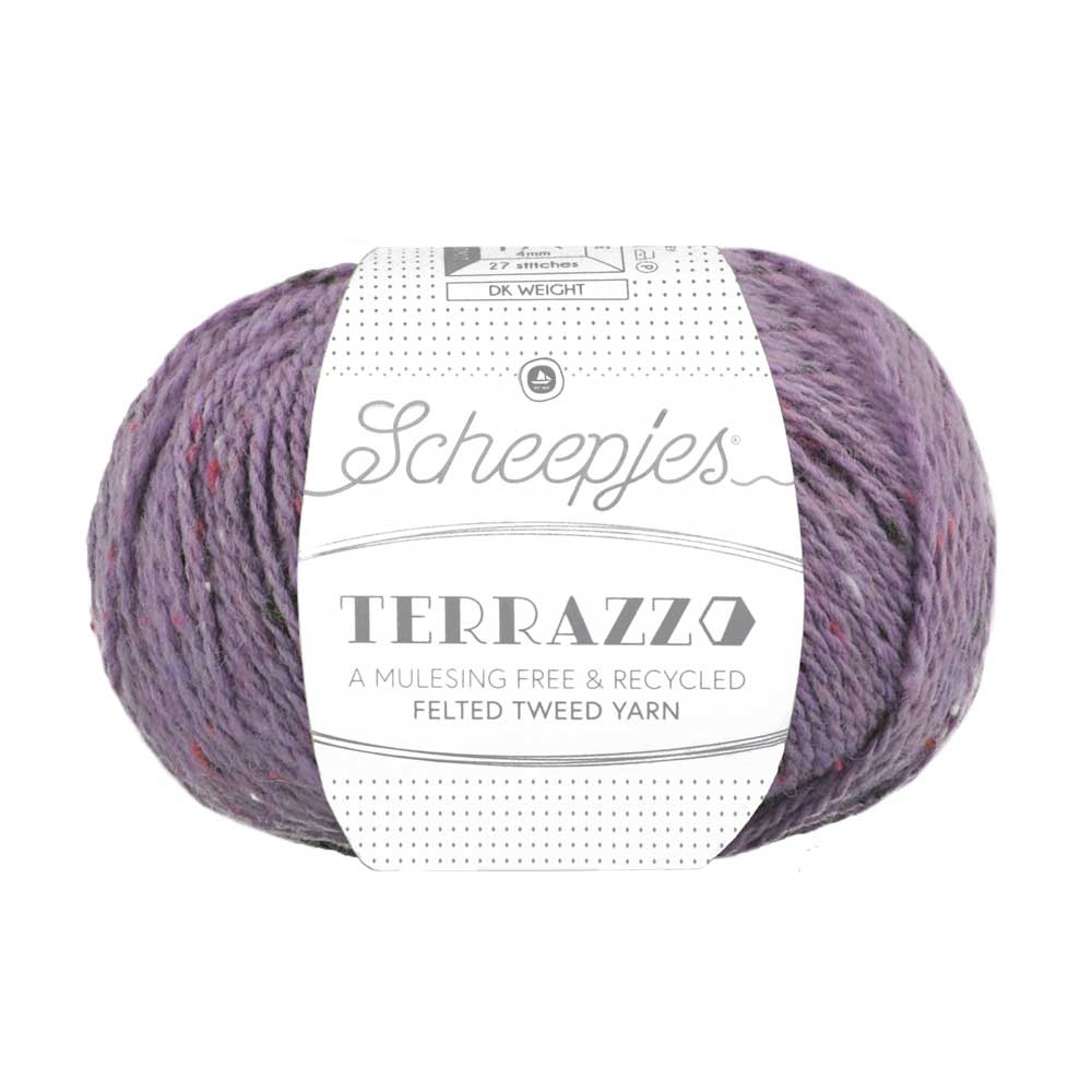 Terrazzo is een milieuvriendelijk garen van Scheepjes gemaakt van volledig gerecyclede vezels. In een verscheidenheid aan kleuren met veelkleurige spikkels. Het is geschikt voor zowel breien als haken. De aanbevolen naalddikte is 4 mm.