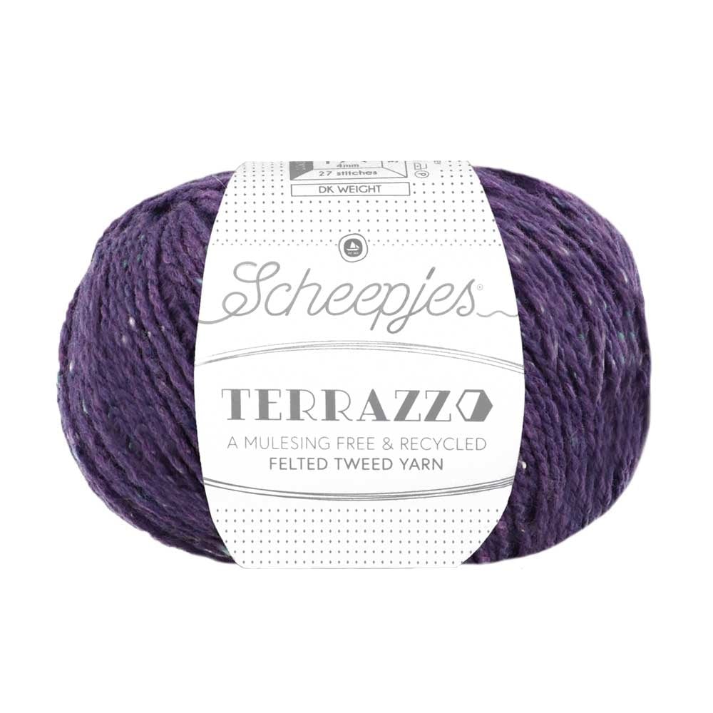 Terrazzo is een milieuvriendelijk garen van Scheepjes gemaakt van volledig gerecyclede vezels. In een verscheidenheid aan kleuren met veelkleurige spikkels. Het is geschikt voor zowel breien als haken. De aanbevolen naalddikte is 4 mm.