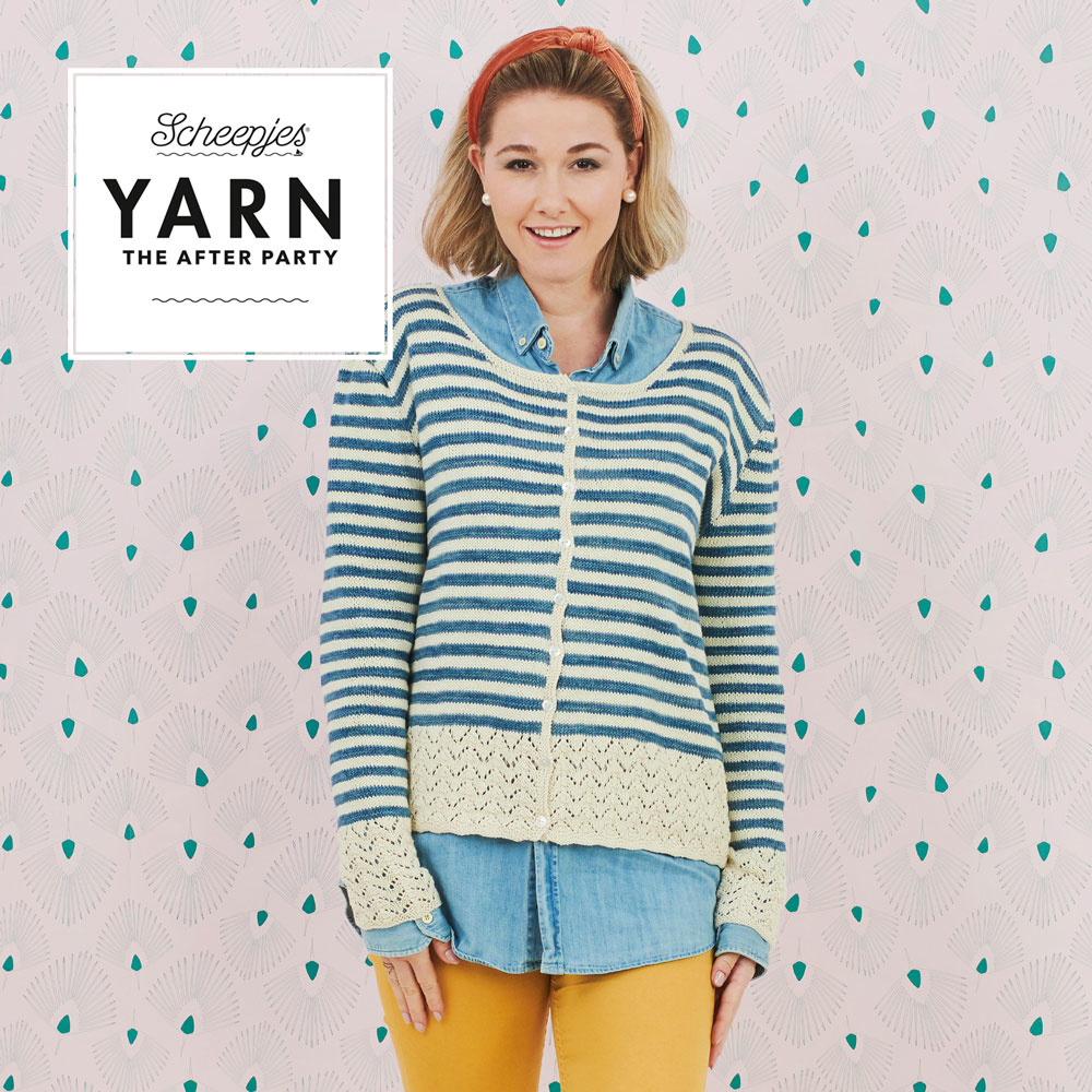 Het patroon van de Oceanside Cardigan is te vinden in YARN The After Party 101. Om dit ontwerp te breien, heb je 2 kleuren Scheepjes SKIES Light nodig: de ene kleur is 118 Undyed, voor de andere kleur is er keuze uit 9 natuurlijke tinten. Het patroon, inclusief schema, beschrijft de maten S t/m XXL.