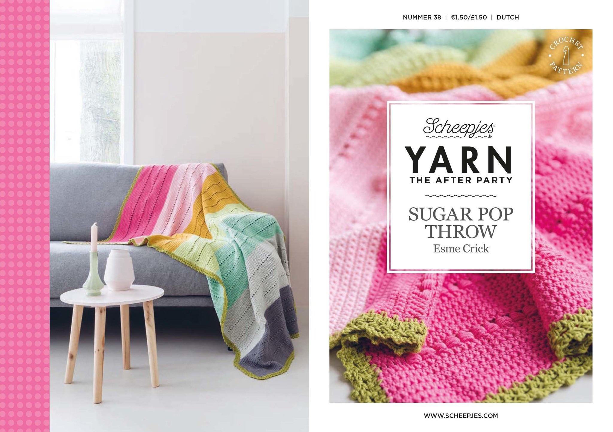 YARN - The After Party 38 beschrijft de Sugar Pop Throw ontworpen door Esme Crick en combineert luxe met comfort. Deze zachte deken bestaat uit 7 kleurblokken die omlijst worden door een gehaakte rand. Elegante rijen met parelsteek worden omsloten door rijen met vasten. Deze medium size deken meet 100 x 150 cm en is perfect om onder weg te kruipen op een zomeravond in de tuin of als deken in een kinderledikant. Scheepjes Cotton 8 geeft de deken een luchtig en ademend effect en toont bovendien een prachtige stekendefinitie.