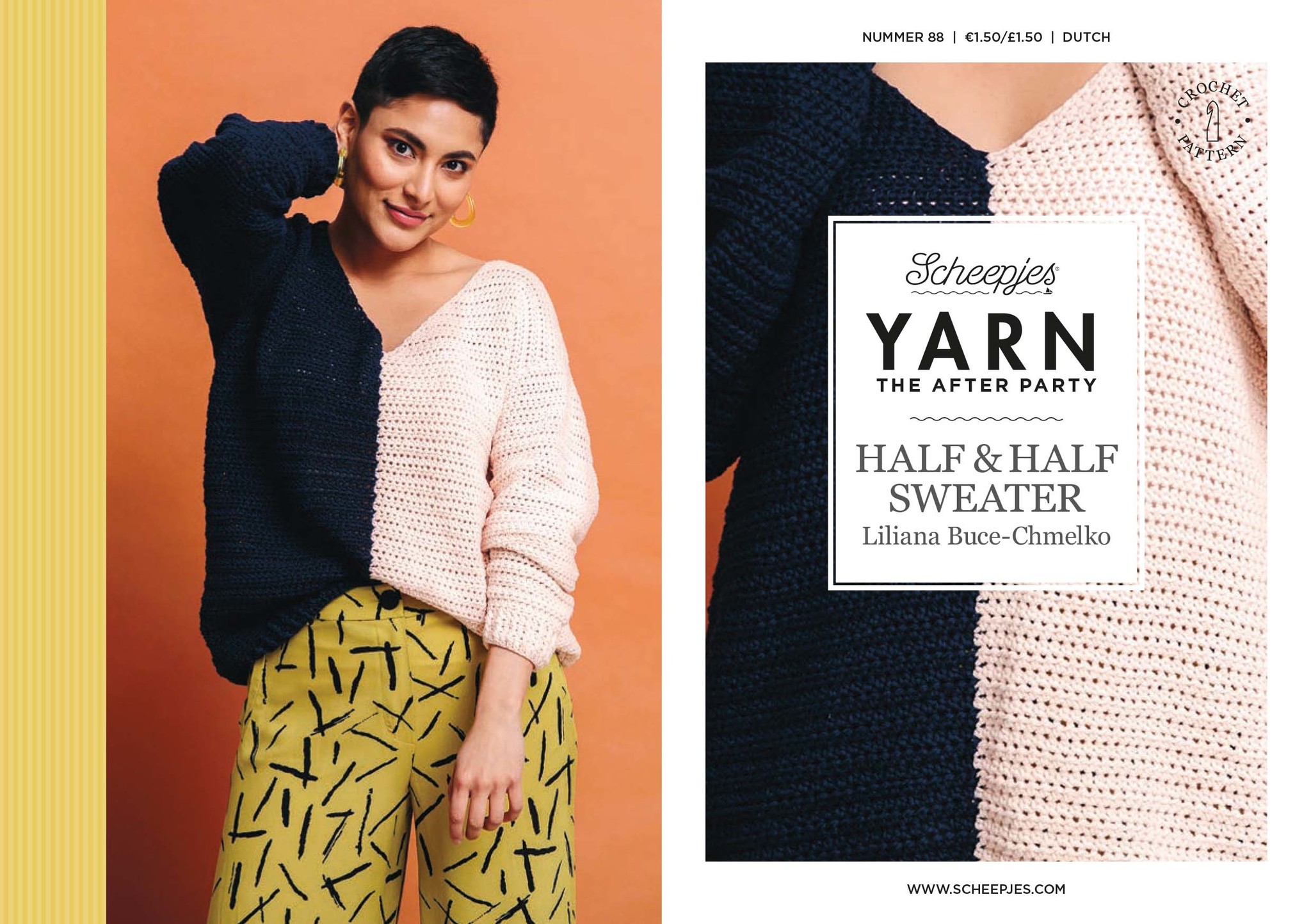 Het patroon voor de Half & Half Sweater wordt beschreven in YARN - The After Party 88. Naast de uitgeschreven instructies bevat het patronenboekje ook een schema. De Scheepjes YARN - The After Party booklets zijn verkrijgbaar in het Nederlands, Engels (UK) en Duits. Verpakt per 20 stuks.